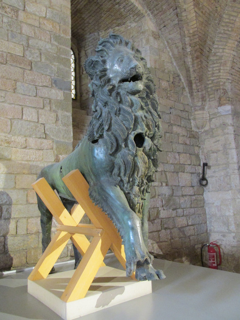 De bronzen leeuw, het origineel uit 1281 van het beeld aan de gevel.