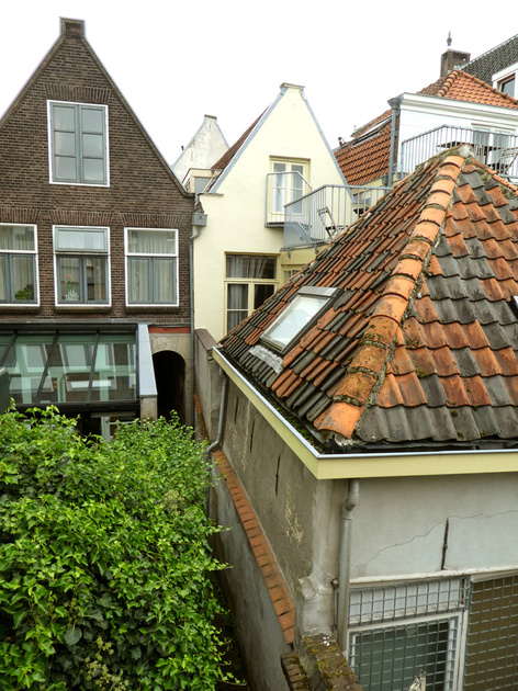 Rechts in de achtergevel van dat pand is te zien de doorgang van het slop