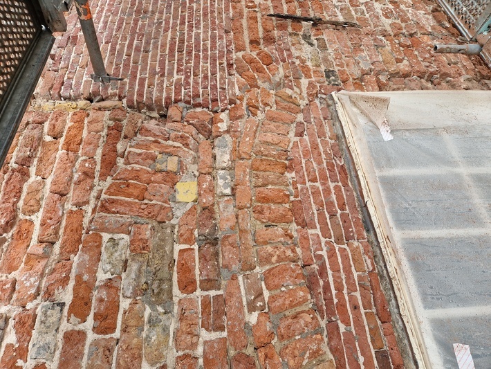 Het restant van de bovenste boog toont de plaats van de oude achterpoort van het Reguierenklooster.