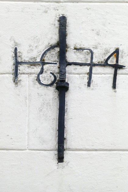 , muuranker in de top van de gevel, gecombineerd met jaartal: