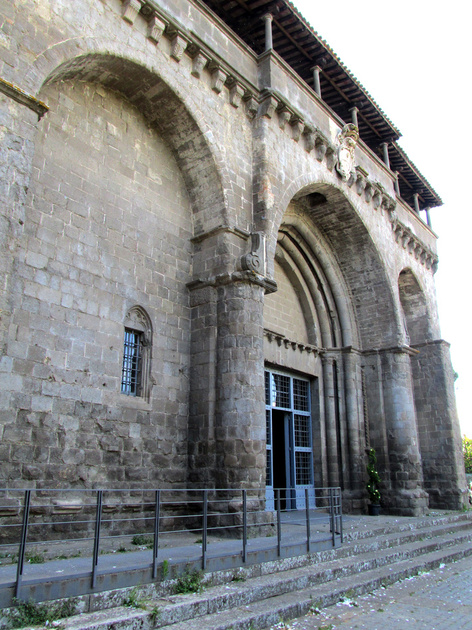 Omdat de deels in de helling gebouwde kerk niet georiënteerd is, maar op het westen gericht, is de 'voorgevel' de oostgevel.