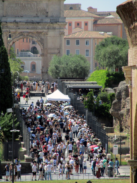 . Toeristen bij de zuidoostelijke ingang (tegenover het