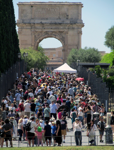 . Toeristen bij de zuidoostelijke ingang (tegenover het
