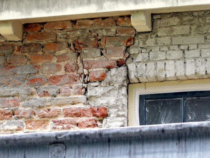 Scheuren naast het linker verdiepingsvenster (van de tuin uit gezien).